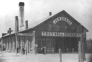 Unfortunately, the census does not list his employer, which could have been either of the two bell casting companies active at the time: Andrew Meneely’s Sons in West Troy or Jones & Hitchcock/Jones & Co. in Troy. His home, however, is listed as First Street between Adams and Jefferson Streets in Troy, which is near the Jones bell foundry, and perhaps we can assume that he walked to work at Jones rather than making the trip across the Hudson River to West Troy.