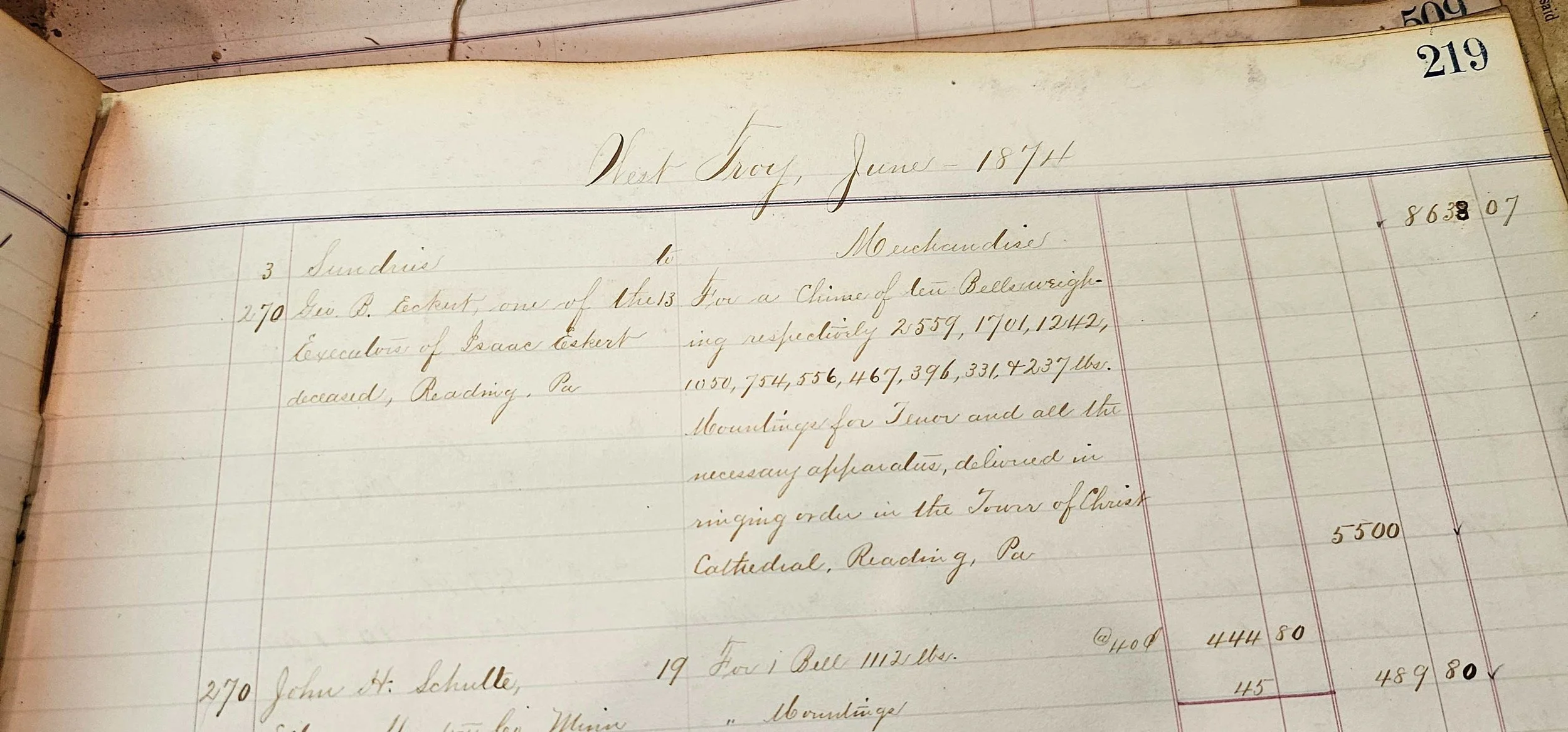 It is likely that the Harrisons resided in Troy for about six years. They later lived in Chatham, Connecticut; Philadelphia, Pennsylvania; and finally Reading, Pennsylvania. It is believed that Harrison worked in or managed foundries in these places. According to his obituary in a Reading newspaper, he resigned his local foundry position “to take charge of the chimes of Christ Cathedral, of which church he was a member, which position he held up to the time of his death.” With this change of occupation, he also acquired the title “professor.”
