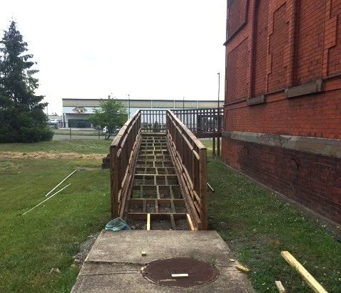 Burden Iron Works Museum handicap ramp rehabilitation in process