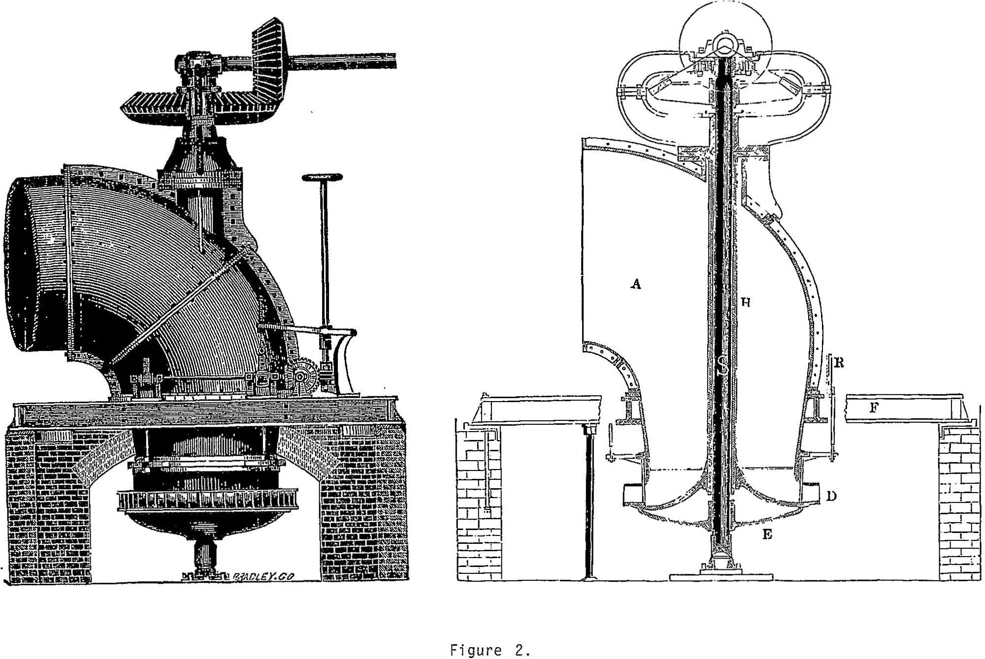 It is interesting that Harmony Mills’ owners decided to use the Boyden turbine technology rather than the Francis turbine technology, developed by James Francis and extensively used at Lowell, Mass. The inward flow Francis turbine is more efficient, easier to control, and less expensive to manufacture.